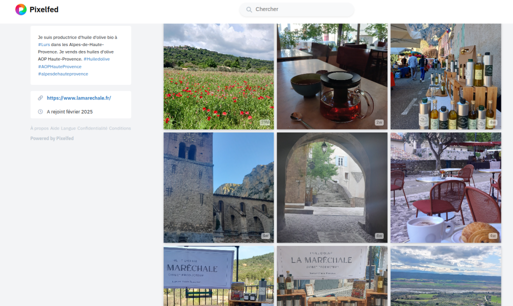 J’ai abandonné la page Facebook de La Maréchale, ainsi que la page Instagram au profit d’un nouveau réseau social décentralisé et qui a vocation a remplacer Instagram : Pixelfed. C’est nouveau, c’est innovant, c’est sympa, bienveillant et convivial. Pixelfed c’est un code open source avec un algorithme lisible, simple et agnostique. Pixelfed est sans publicité. Certes, j’ai perdu en visibilité et j’ai perdu des liens avec des clients et partenaires sur Instagram. Mais j’espère contribuer à fournir du contenu riche à ce réseau naissant, j’espère contribuer à animer sa communauté et à la rendre vivante et conviviale. Je gagne aussi en visibilité grâce au fait que nous y sommes encore peu nombreux.
